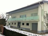 Das Glasgeländer musste der Stiege und dem Deckenverlauf angepasst werden sowie im 1. OG eine freitragende Absturzsicherung herstellen.